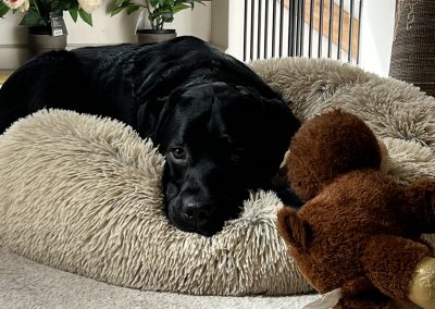 Meet Calvin – a loving and sensitive boy who brings warmth and happiness wherever he goes. Calvin is a very loyal companion who develops a deep emotional bond with his person and is happy to tag along for any adventure. With a true adventurous spirit, he is happiest when he is outdoors with his person, whether hiking along forest trails, swimming in the lake, or strolling through the neighborhood. He would do best in a home with a family who value outdoor adventures as much as he does. His excellent recall makes him a wonderful off-leash companion, and he’s shown he can adapt beautifully to new environments — even accompanying his volunteer puppy raiser to classes at UBC, where he became a calm, gentle presence amid the bustle of campus life. On leash, he walks well in a harness. Calvin’s intelligent and eager to learn, always ready to engage in puzzle games, nose work, or anything that keeps his mind busy. Although he is known to get excited when other dogs are around, patience and guidance easily get him back on track. With routine, patience, and a sense of adventure, Calvin thrives and shines as the kind of partner who’s always by your side, tail wagging and eyes full of trust.