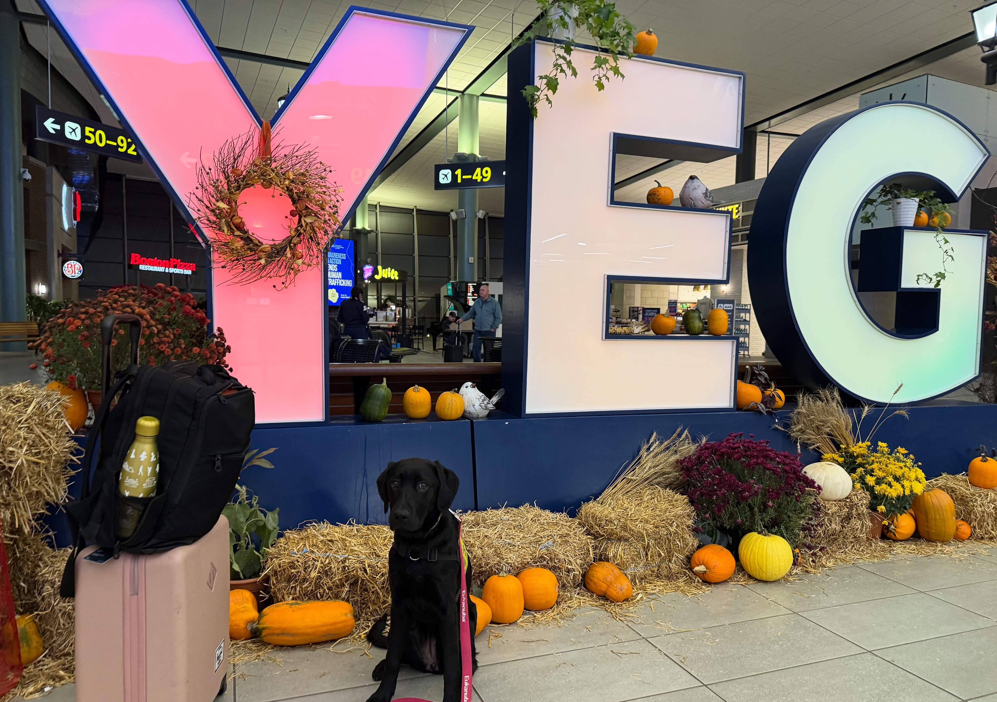 October was a big month for me. I had lots of outings, but the big one was flying to Edmonton and joining in on the face-to-face meetings with my puppy raiser for her work. I got to fly on an airplane, go in Uber vehicles, stay at a hotel, visit restaurants, and I got to say hi to so many people.