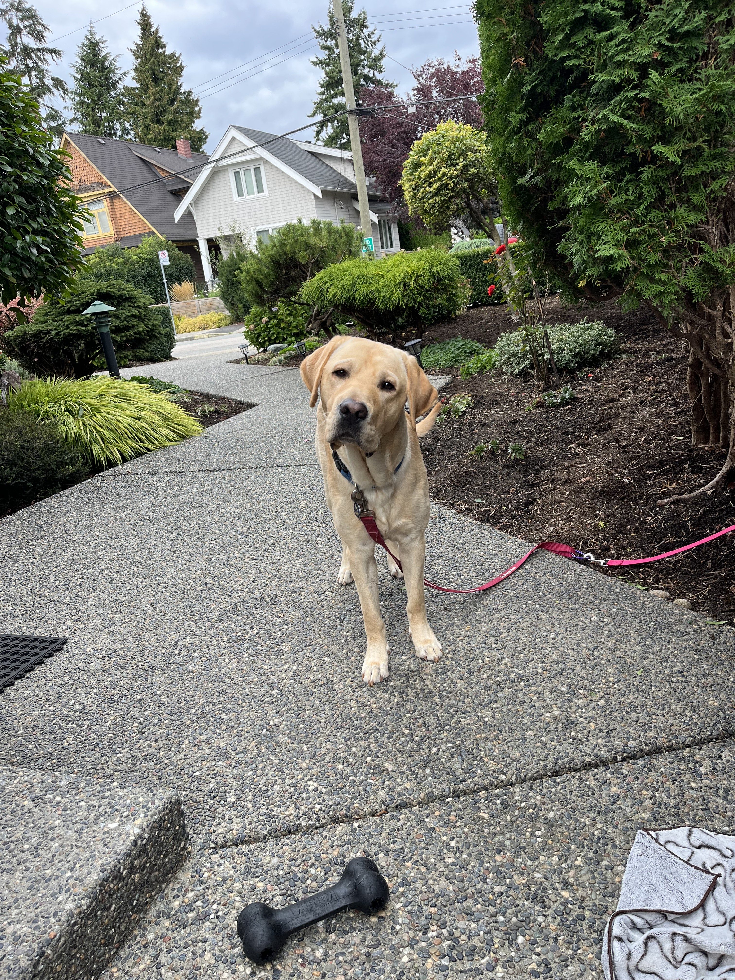 Casey was with puppy sitters until the 24th of this month, and was happy to have another dog for company the last two weeks. He seemed to settle down nicely at both his sitter’s homes, and Anita-sitter, number 1, sent me a picture of Casey watching her garden. She was so sorry, due to a medical emergency, she could not keep Casey, but he seemed to adjust well to his second home. He was happy to rest up quite a bit when he came home to us after all the excitement and his new adventures.
