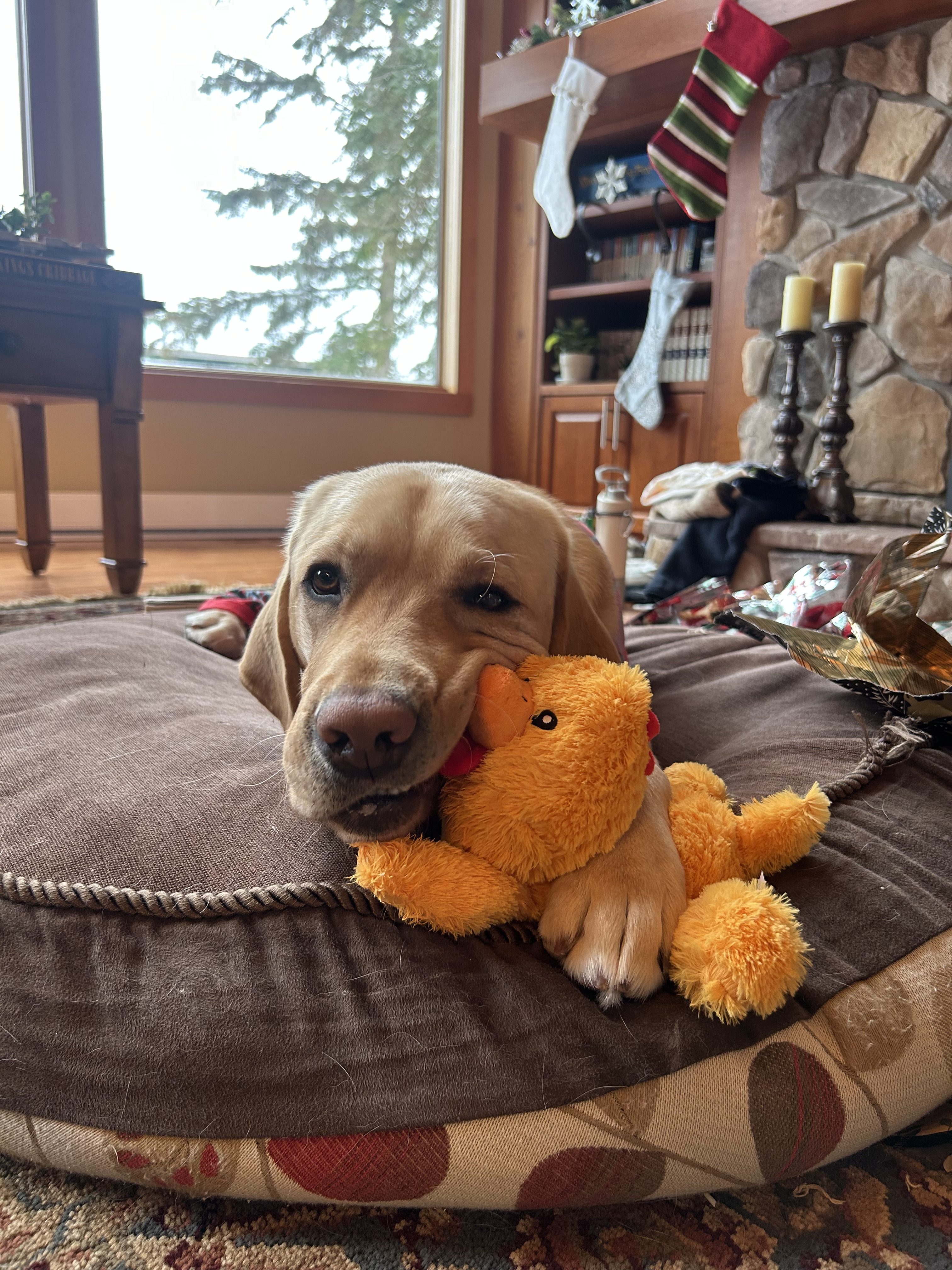 I had a great Christmas! I got to open lots of presents. Ripping open wrapping paper is my absolute FAVOURITE game ever!! I got some nice toys, a new lick mat, a new collar, and some doggy ice creams. My human also had the audacity to gift me nail clippers and give me a Christmas paw-dicure! Rude right!? A bunch of people came over for Christmas, and I was such a good boy. I impressed my human with my gentleness around the young kids and my overall calm demeanour around so many visitors. On Boxing Day, when all the people had left, Koda and I had a long cuddle nap to decompress.