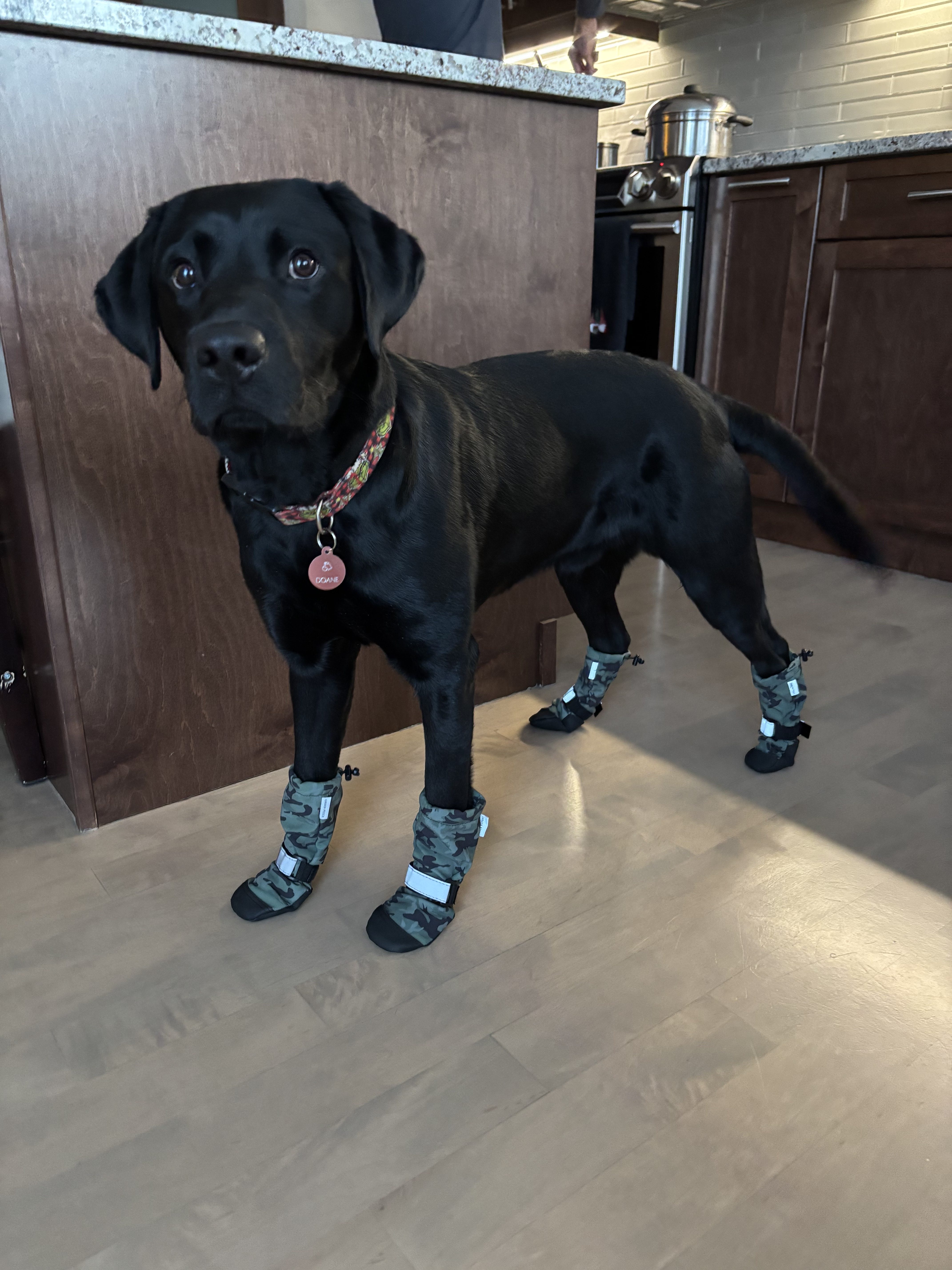 We did work on some of my training things too throughout the holidays, like side, heel, stand, and staying in the position I was supposed to be in, even when my hooman moves away from me.