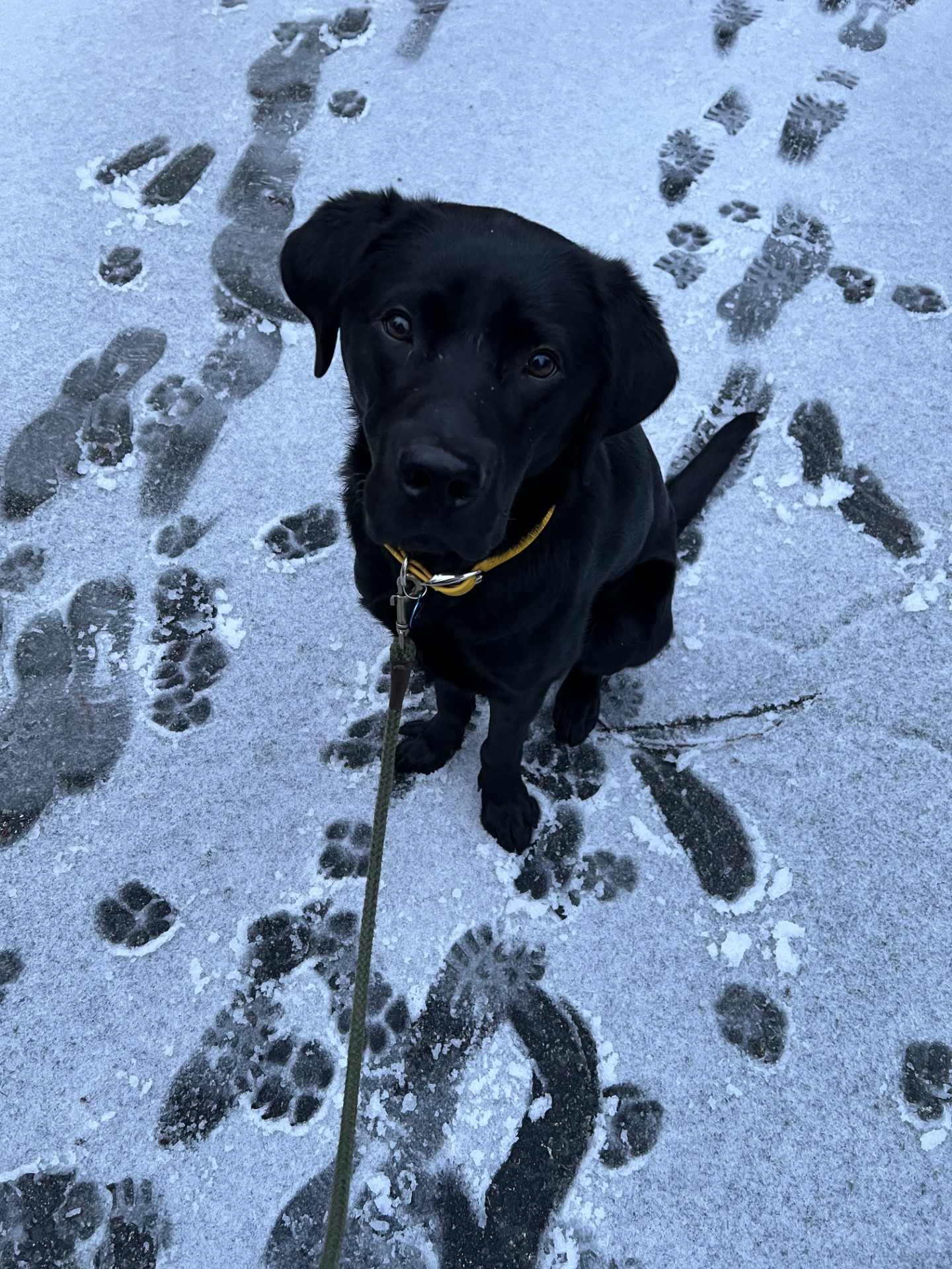 Hello everyone! I made one of the most exciting discoveries ever: cold, white stuff fell from the sky and made my road really slippery. They call it snow! It didn’t last long at all, but I had a fantastic time smelling it, prodding it with my nose, and even tasting it. I hope to get more one day.