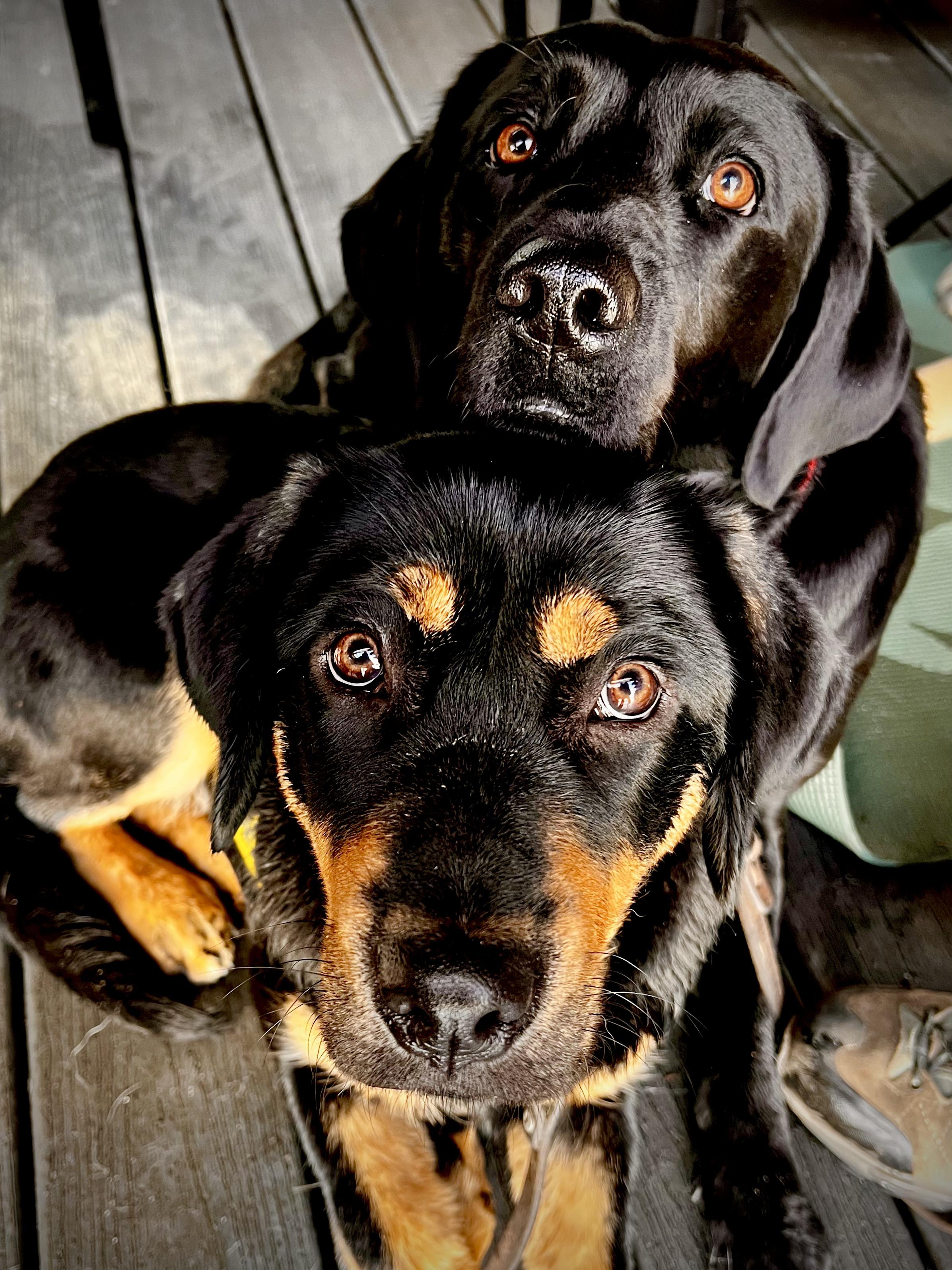 Her unique colouring brings much attention from the public. I often have to explain that she is indeed a purebred Labrador Retriever, not a Doberman cross, and the black and tan markings are a result of a recessive gene from both her parents.