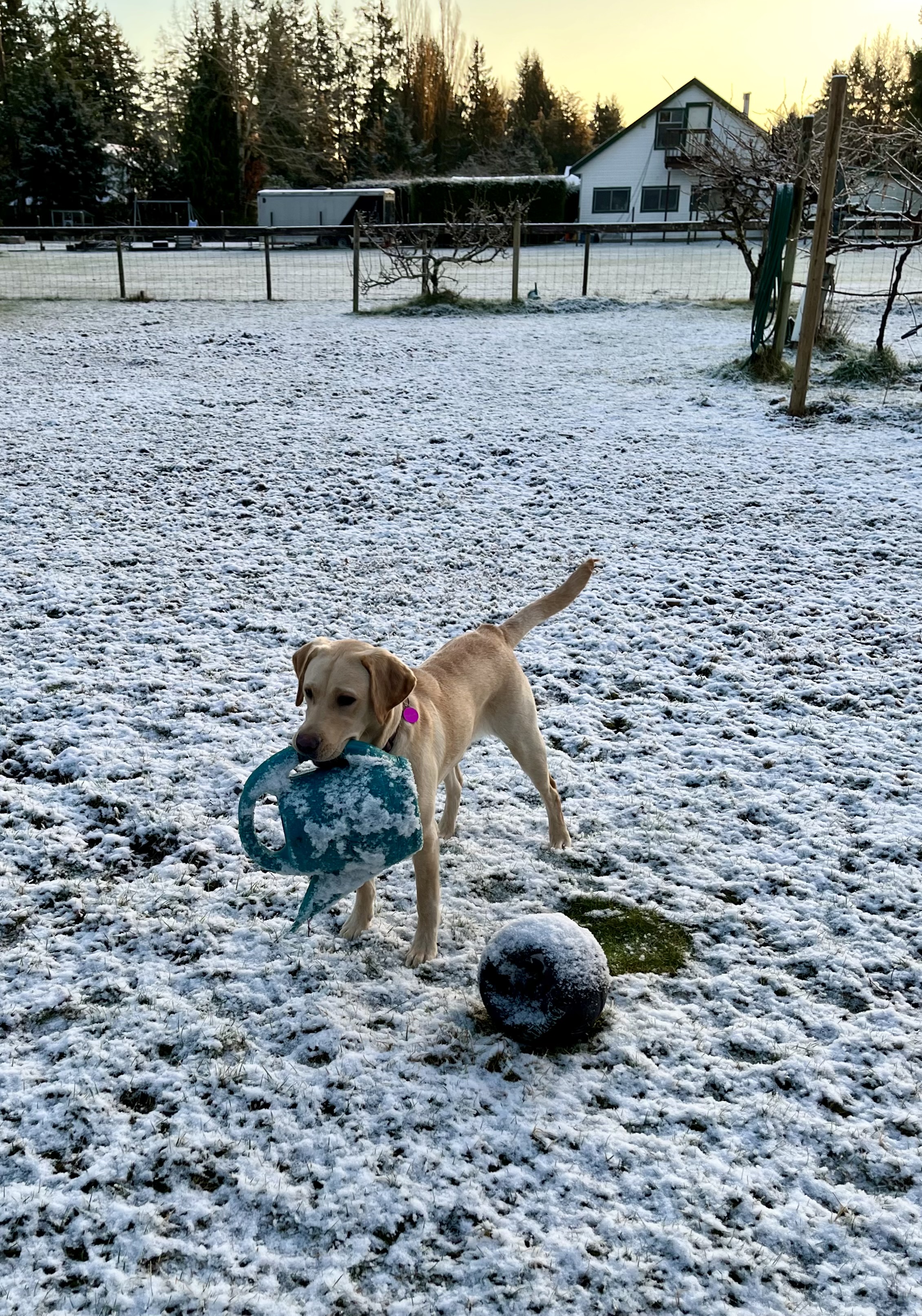 I really enjoyed spending time outdoors this month-playing with plastic watering cans, watching and listening to the birds chirp, basking in the sun, and playing in the light snowfall.