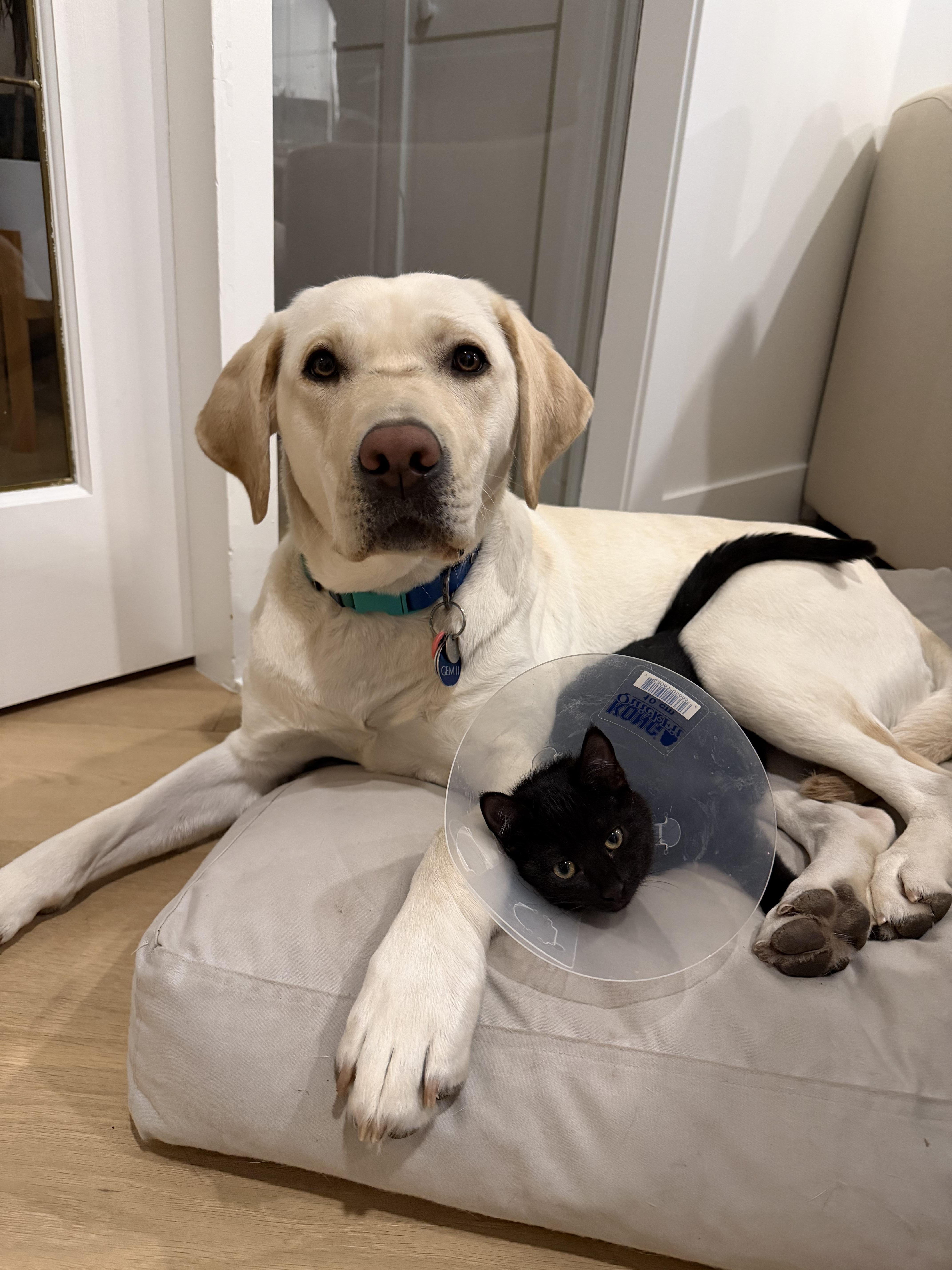 The other big highlight of January was having a 5-month old foster kitten in our home for about 2 weeks. Gem was IN LOVE with Nyx! It was very good practice for her arousal spikes and being gentle. Gem loved to give Nyx lots of licks. Before Nyx got adopted, Gem and the kitten had some good cuddle sessions. Some would say that Gem actually preferred Nyx the kitten to Grace the puppy!