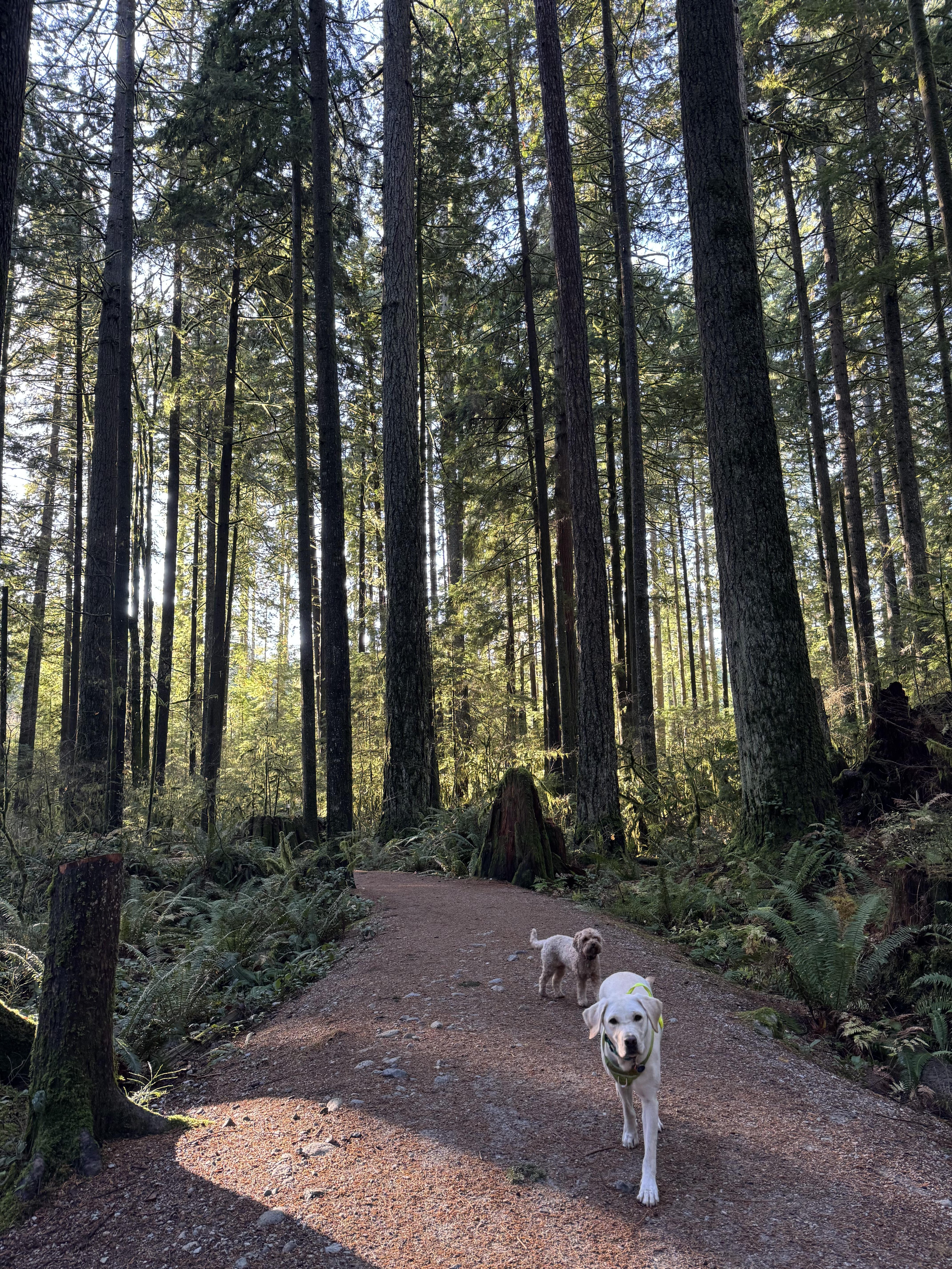 I tagged along with one of my raisers for a day of a bunch of errands – practicing going into lots of different stores, ignoring people, and settling quickly. A highlight was going over to North Vancouver on a long, beautiful walk full of crunchy leaves and new smells. To top it off, I started to go on some walks/runs with my raiser, unlocking a whole new level of speed.