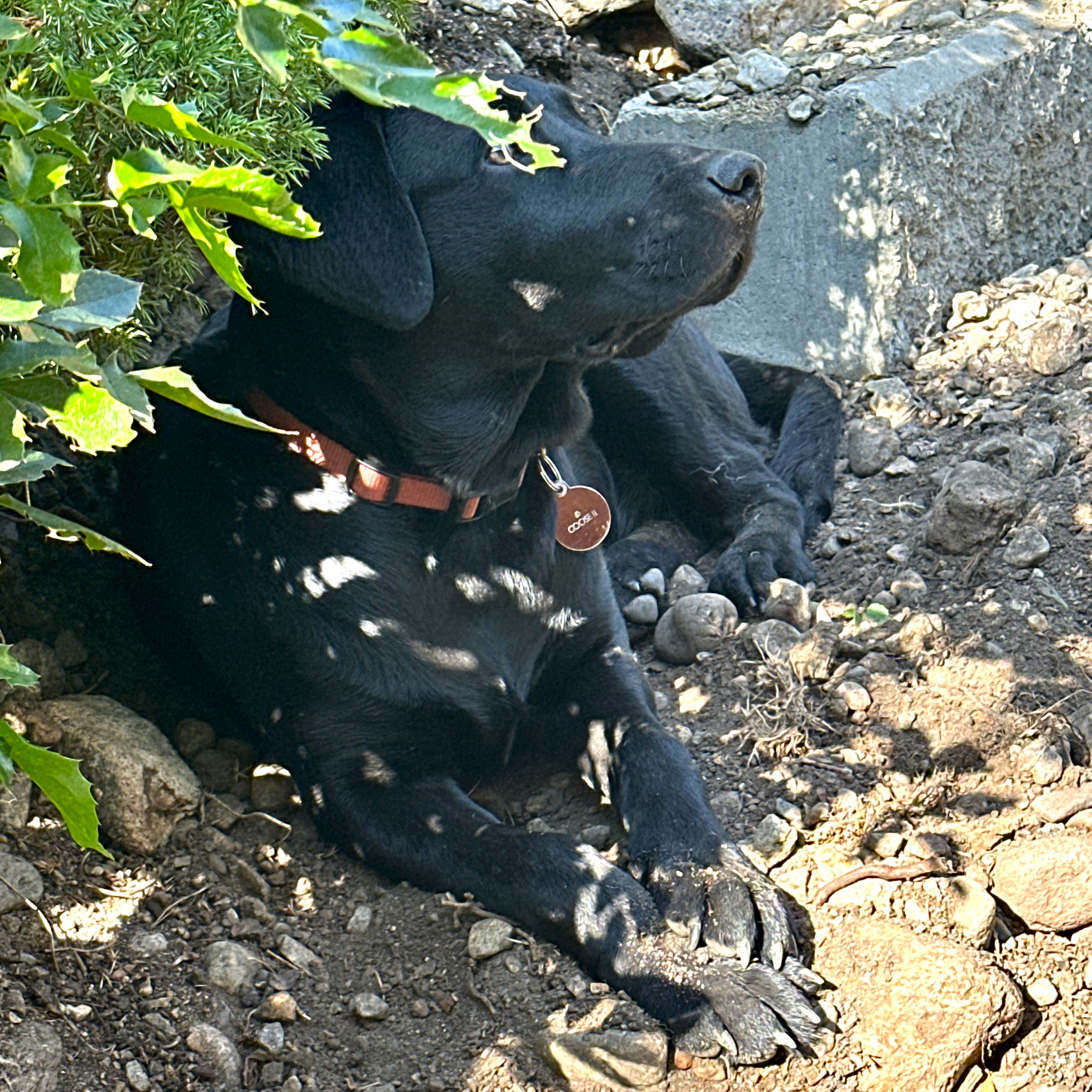 Goose is gone camping. He’s going camping again. He loves going to the shopping center and loves to go to restaurants. He loves to go to the dentist and doctors’ appointments. He’s a great help when it’s time to do yardwork.