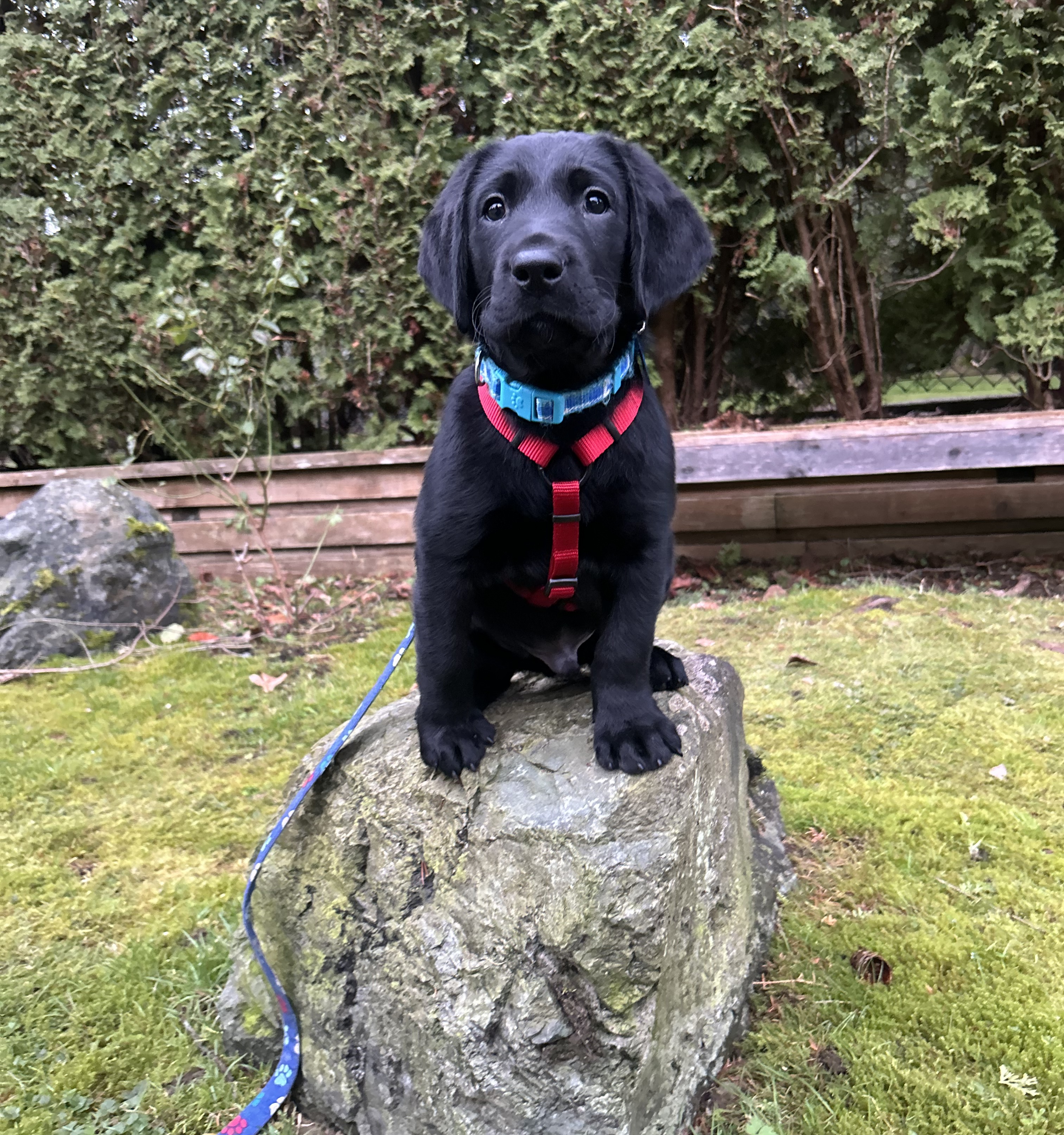 In terms of training, I have been very busy! I have learned that new sounds, textures, and sights aren’t scary and that I can always turn to my human for encouragement or some nice kibbles! My world has gotten so much bigger in the past week, and it’s a lot to take in, so I make sure to get tons of good sleep between my adventures. I have also caught onto the idea that when someone says “Hudson,” I should quickly look at them to get some food! I’ve also learned that “puppy puppy” is so much fun, and running to my human in response to this cue gets me a whole lot of kibble. A very important skill I’m learning is that my cape is a valuable, fun thing to see and put on. Whenever my human shows me my cape, a kibble appears in front of my nose. When I chase my cape, I get even more praise and kibbles. I’m loving wearing my cape to go on outings, though it’s still quite big on me. I have somehow managed to wiggle out of it in my sleep on several occasions! But I’m sure I’ll fill out the vest in no time, as I’m growing super fast.