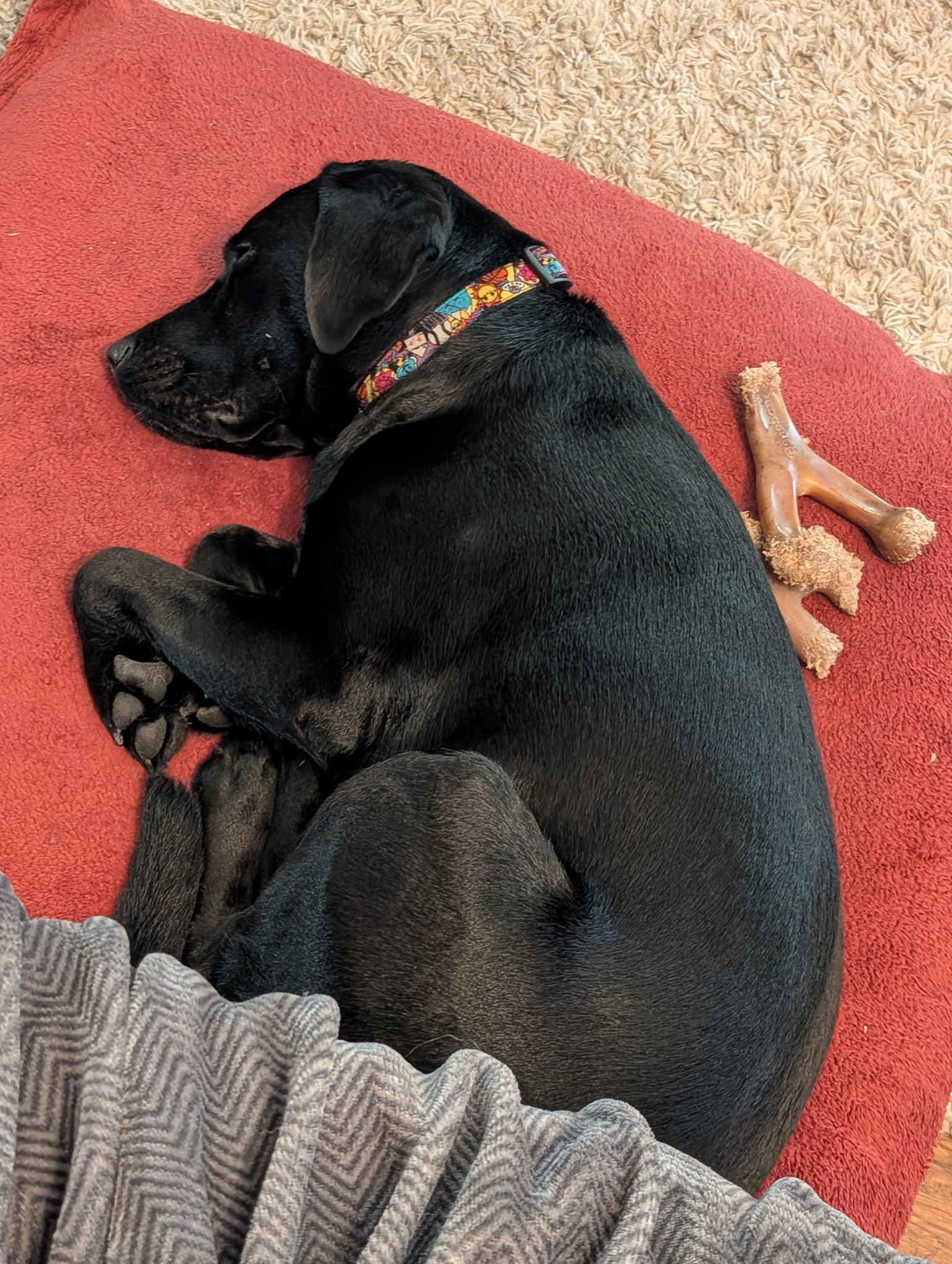 Her favourite things are walks in Pacific Spirit Park and exploring the Dyke. She continues to work on trying not to bounce like a kangaroo while chomping at her leash when starting on walks. Four paws on the floor, Miss Juno! You can do it!