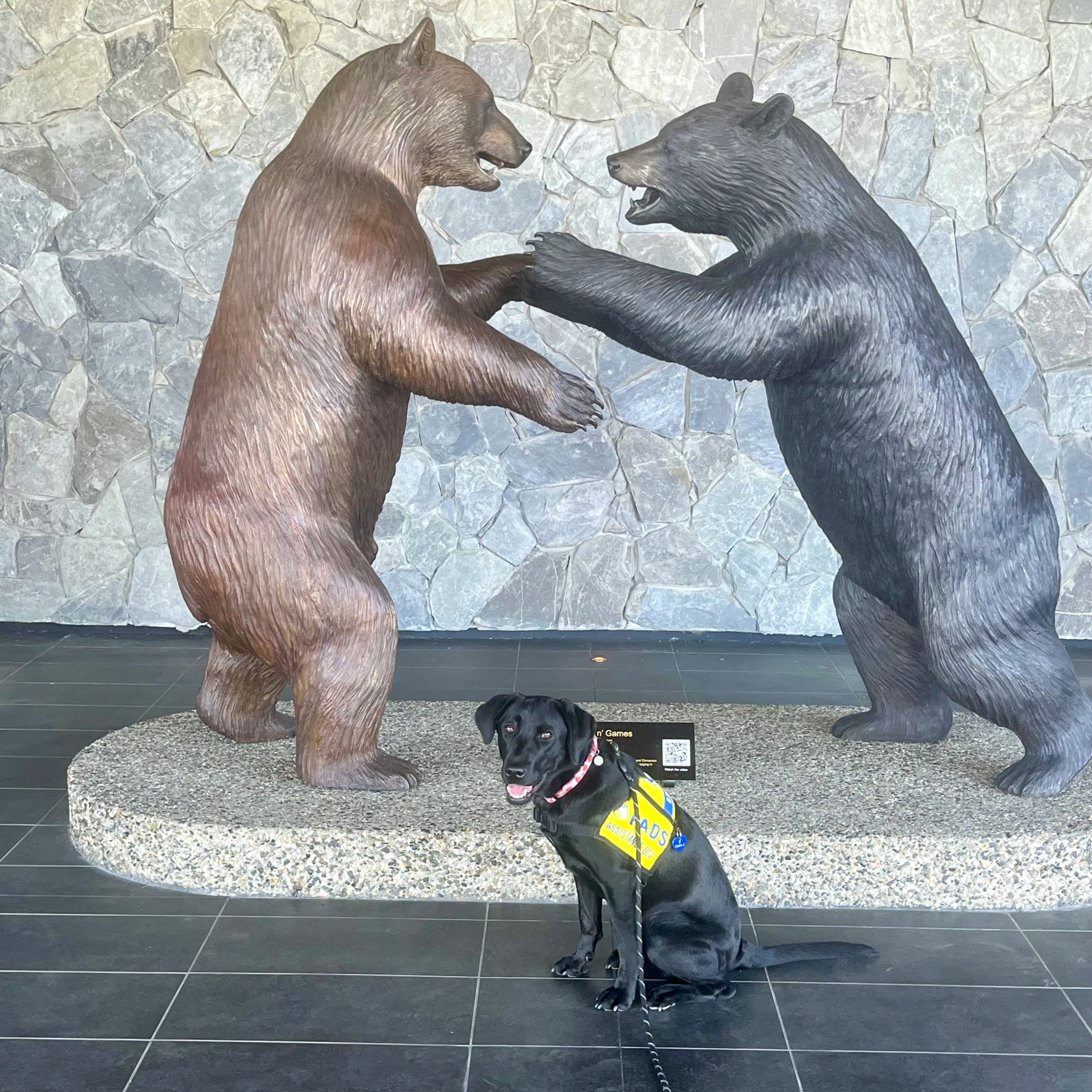 We have seen her confidence grow with her daily outings, especially in the grocery store. We’ve continued working on her dog distraction, which has improved. She is also working on her “heel” cue.