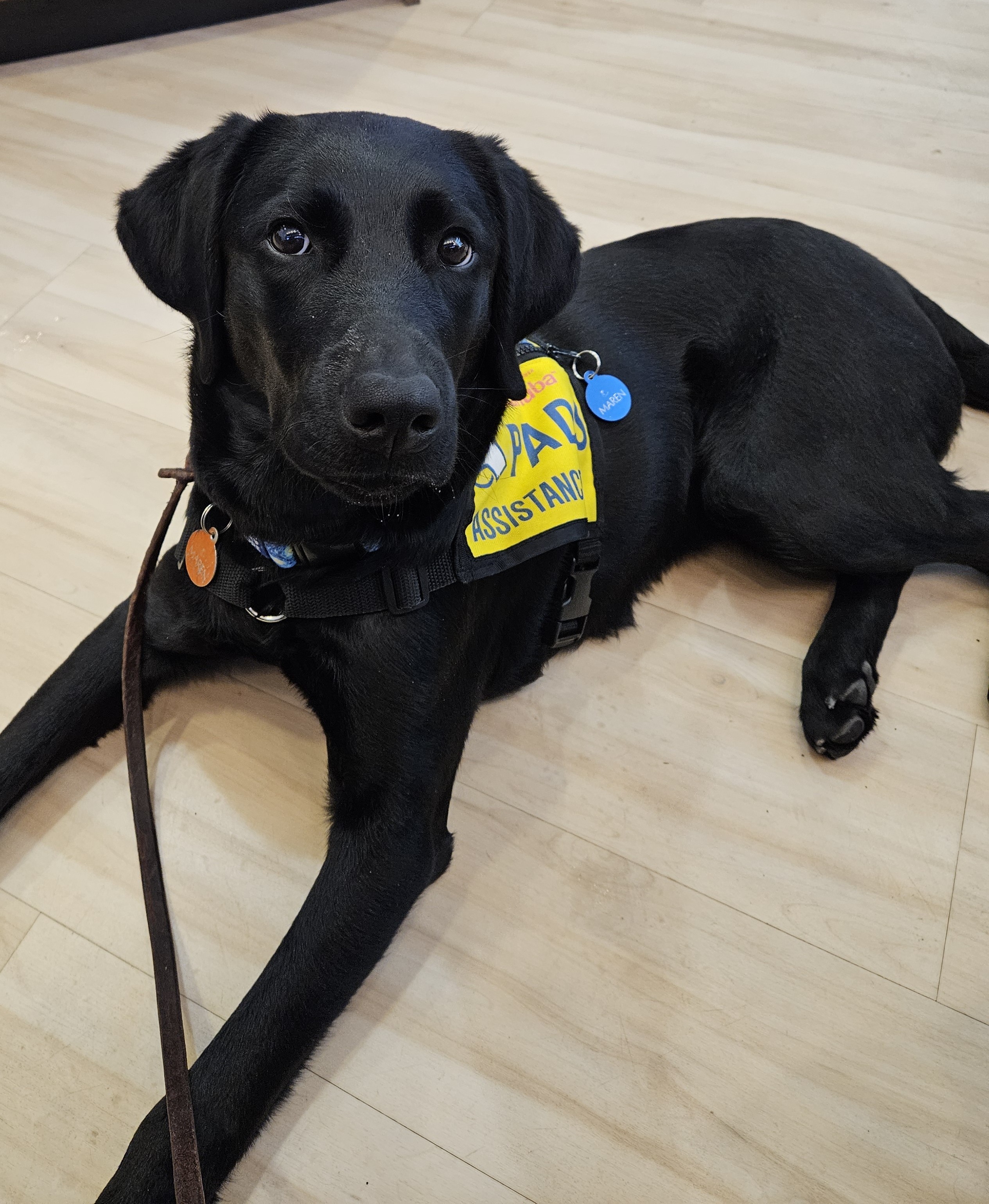 Playdates are her favourite downtime activity. She loves getting together with PADS friends, both current and released. Puppy class was a bit confusing for her this month because she saw her friends there, but wasn’t allowed to play with them.