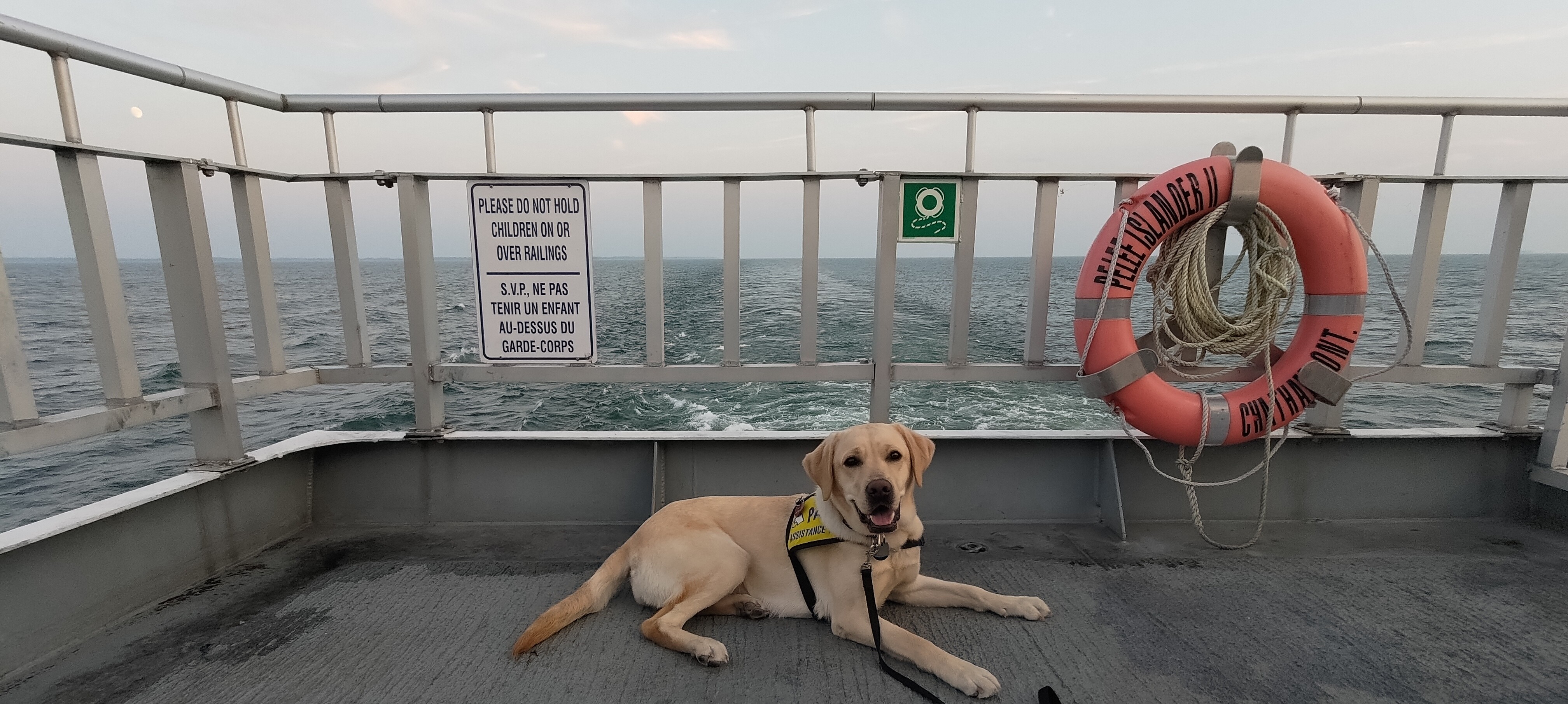 When we finally landed in a place called Toronto, we were at the airport for a very long time as the airline lost our luggage. Luckily, my hoomans had an extra bag of treats for the afternoon. We then took a car, I think they are called Ubers, to a place called a train station. It was very busy, but I was very good and attentive to my hoomans. When we got to the platform, we were loaded first on the train, which had a lot more room. My hoomans had a special code for service dogs that was required by Via Rail for me to also be able to travel with my hoomans.