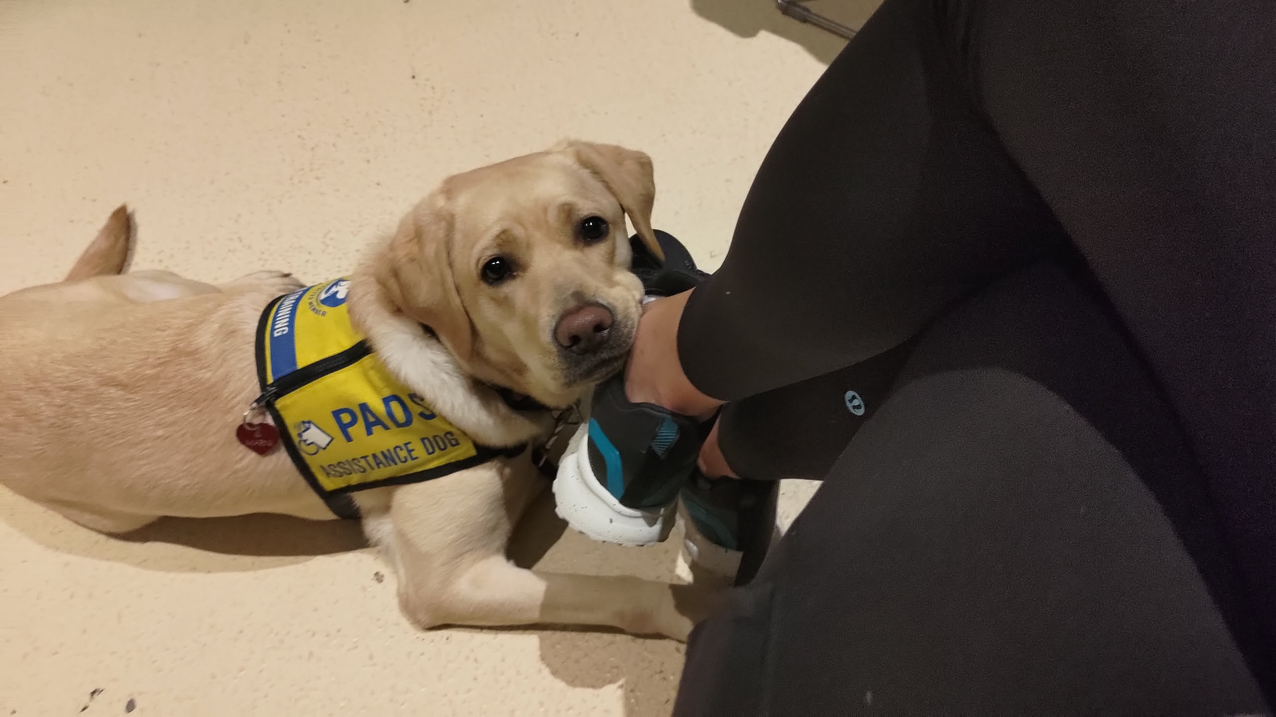 Working hard on new skills like staying in place and dog distractions, as well as refining other skills, like side positioning and going through doors. Next month is my big test!