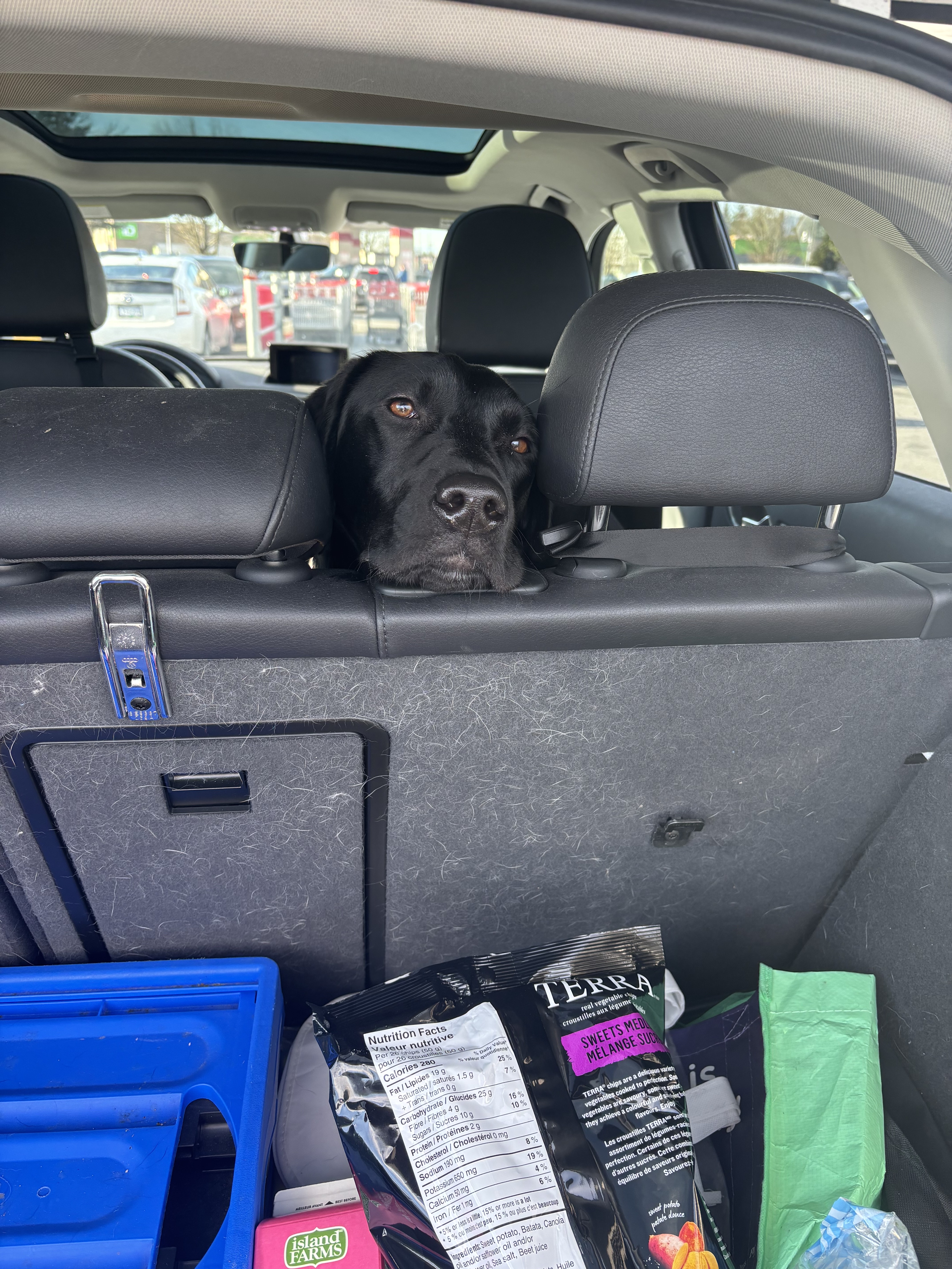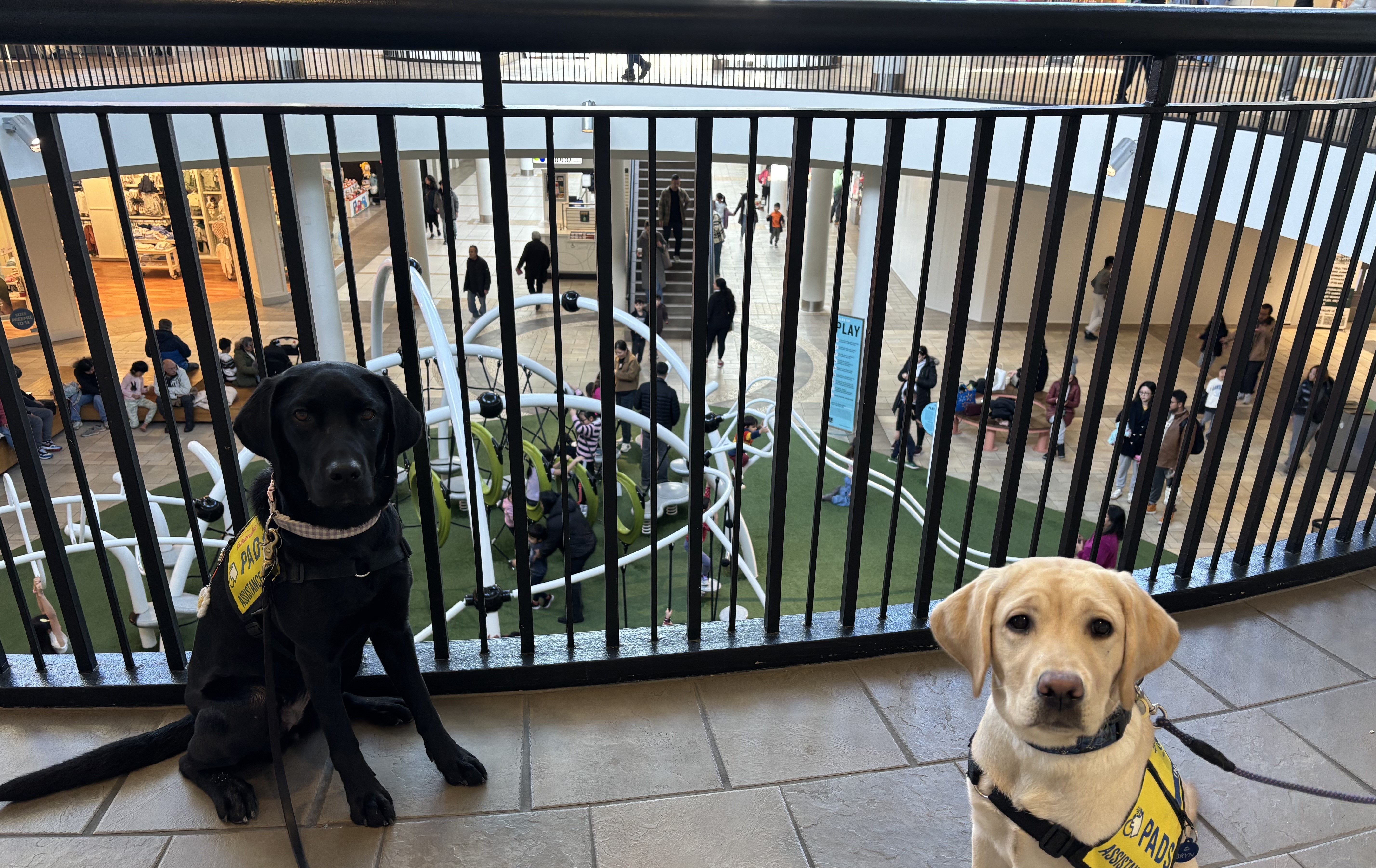 I’m working on settling in public. I’m good at home, but it takes me a while when we’re out. Mom is constantly going for coffee dates, or we practice when mom & dad are having dinner. Mom calls me her sidekick. I get to go grocery shopping, the mall, physio, coffee dates, and she says I’m good company, but I know it’s really about training.