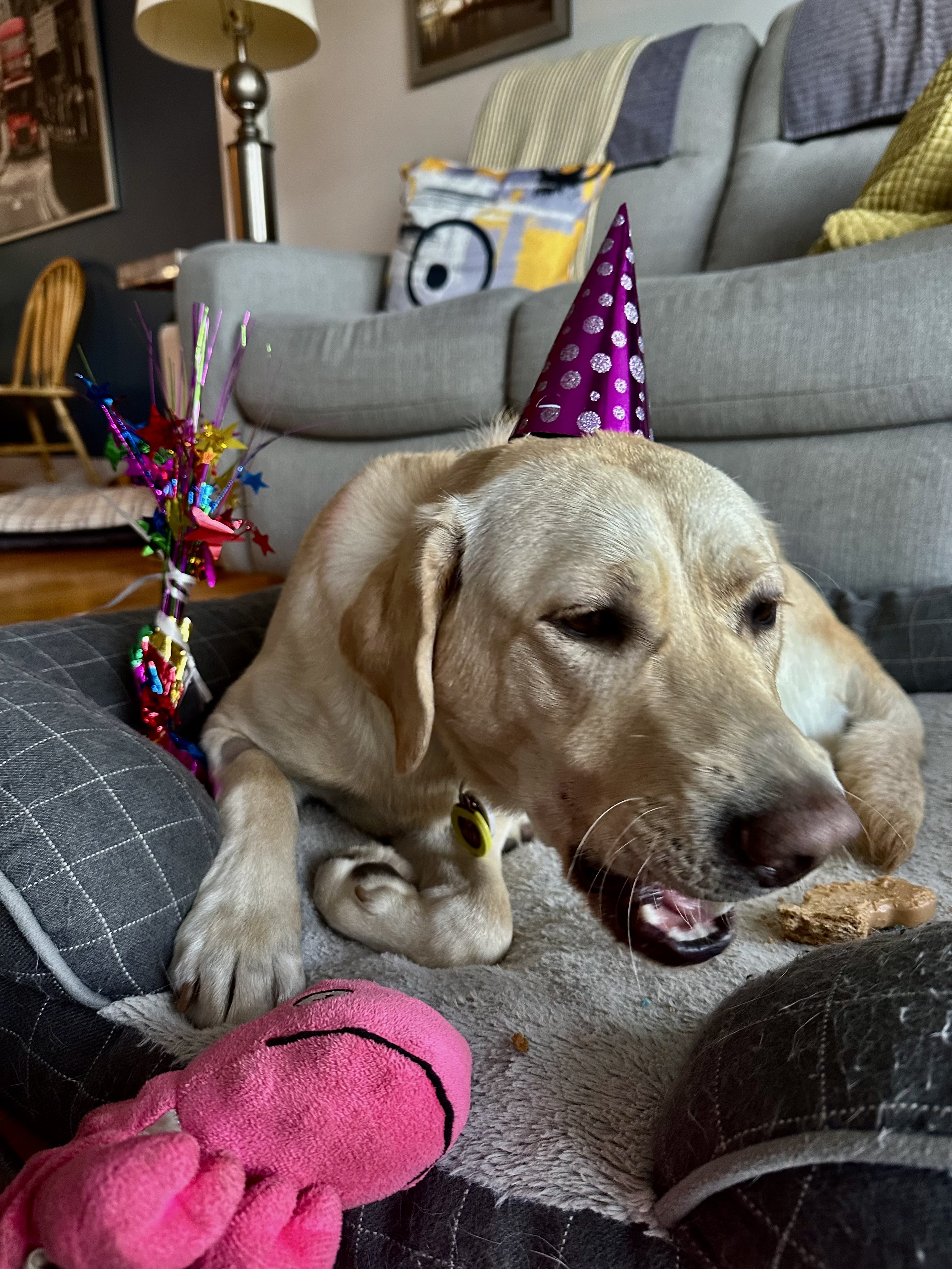 She went to the Whitecaps’ game to see Mueller play his first game as a Whitecap. She attended a collector car show in Langley, she celebrated her 1st birthday, got spayed, spent time with her momma, Betty, who came over for her next litter. Mid-woof Myra = honing her snooping skills. She is definitely a girl who wants to know everything that is going on!