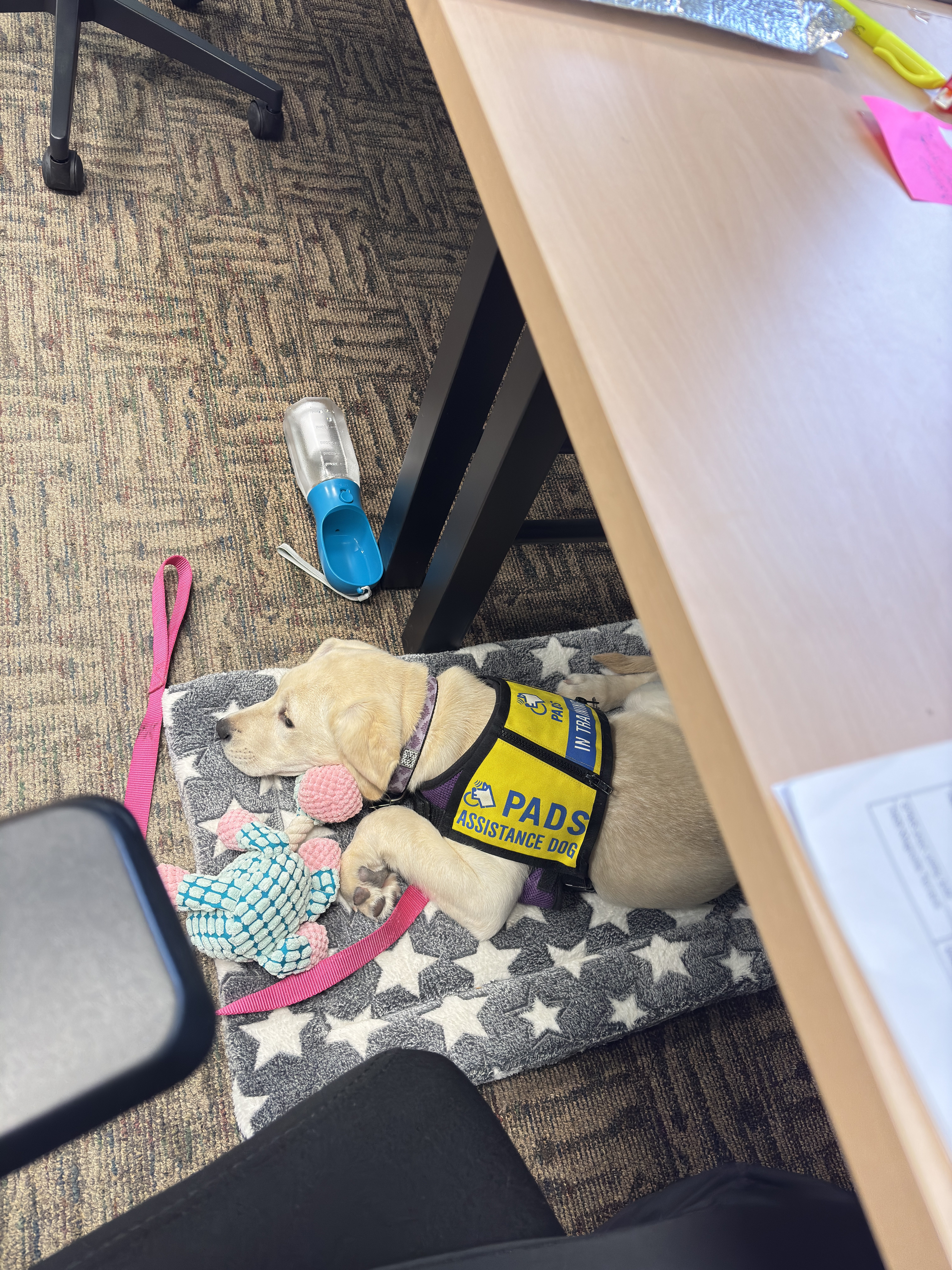 Nellie started going to work with me, and she usually quietly observes and listens during the car ride. She is a sweet, cute little thing and a big comfort for everyone in the office.