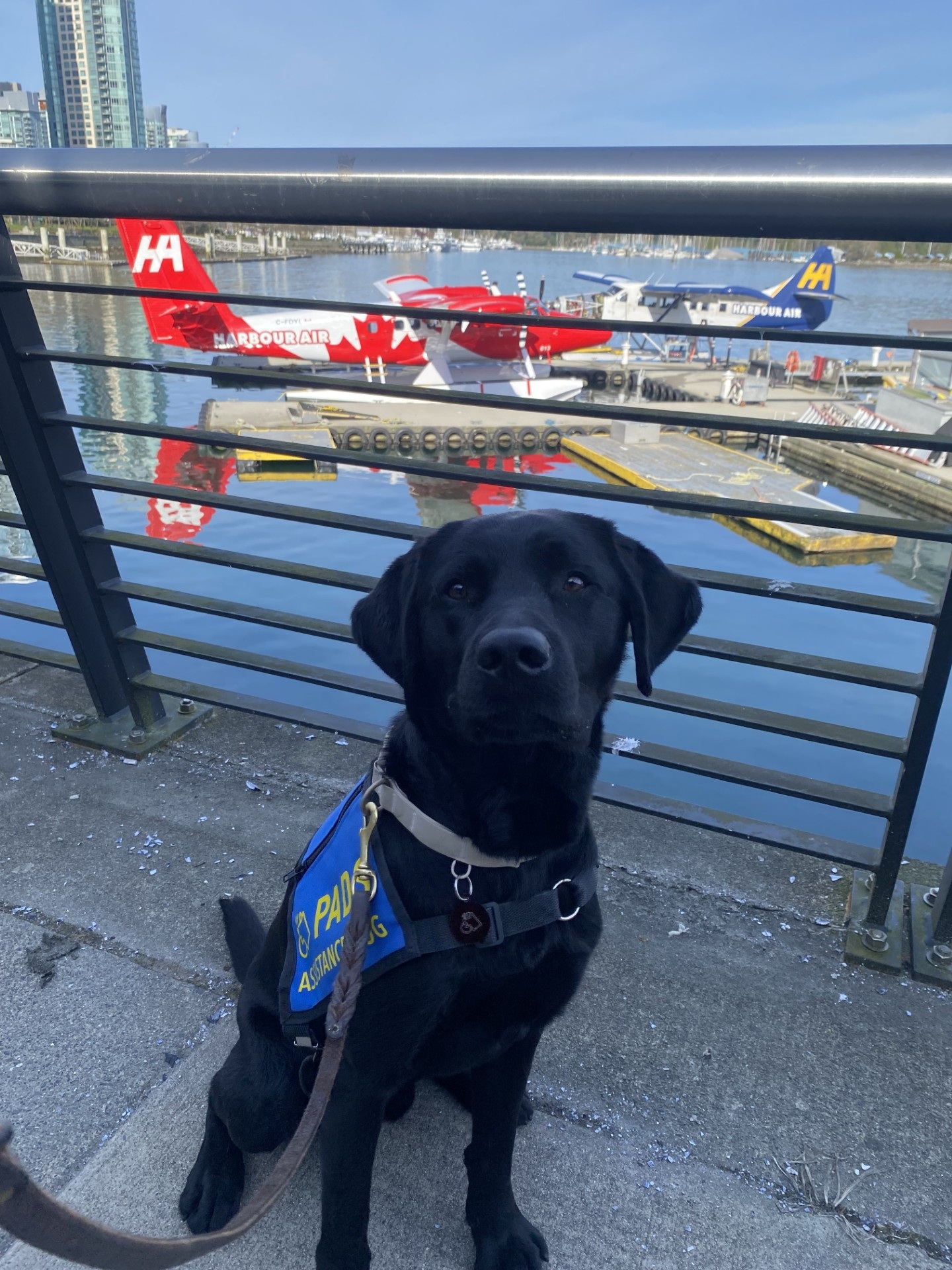 Puzzle is doing great and continues to improve his skills every day. He and his trainer enjoyed a field trip to Harbour Air, where he had the chance to board one of their seaplanes. The experience was exciting and full of new sights. It was a fun and memorable day for him.