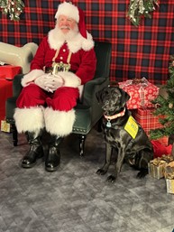 This month, Rimbey has been working hard on her retrieving and starting to learn wheelchair skills like “Behind” and “Foot.” Rimbey loves to help around the house and all around the training center by opening and closing doors and retrieving items. Rimbey also got two weeks off for the holiday season to relax and rest before we start training again for the 2026 season!