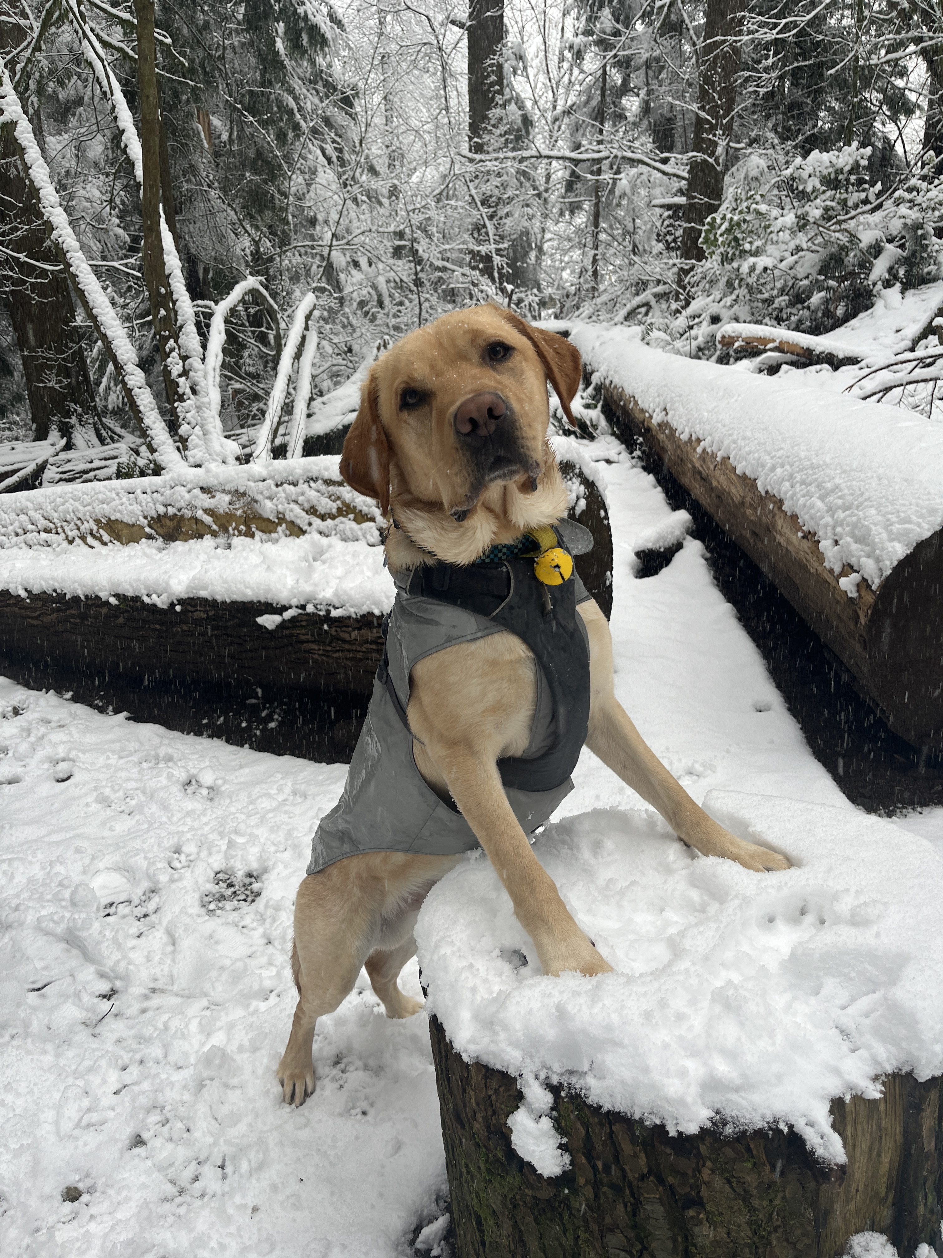 Steller was a wonderful boy to sit. He was the perfect buddy when attending UBC lectures with me. When we were not at school, Steller relaxed at home with his pal Taj and got to explore the North Shore forests.