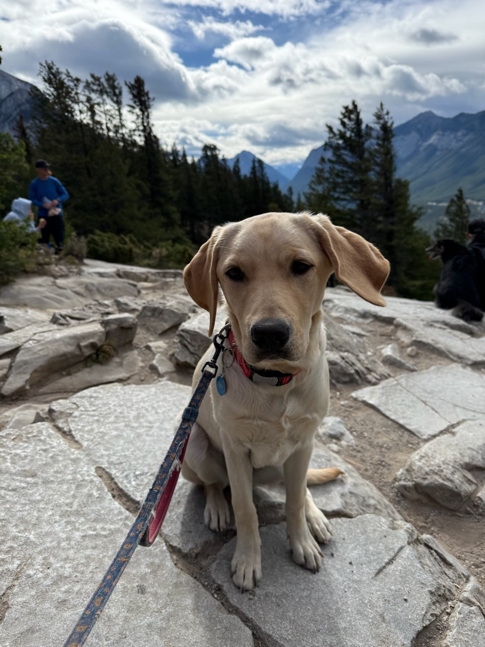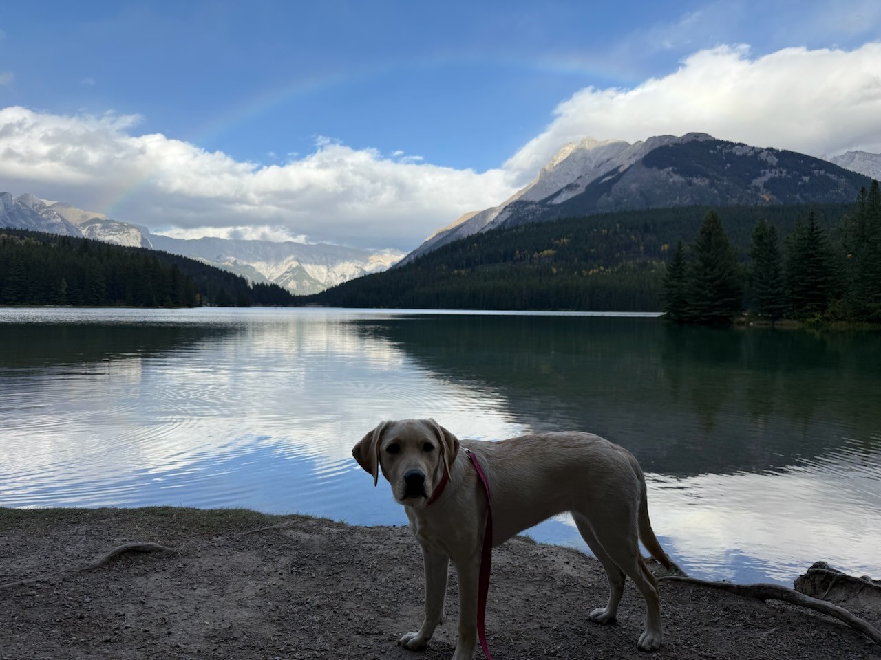 September brought a return to routine for Tattor and her family – but not without a bit of fun to ease the transition! We squeezed in one last camping trip to close out the season, where Tattor conquered Tunnel Mountain without hesitation. She strolled up and down Banff’s Main Street like a pro, taking in the sights (and smells!) with her usual calm and curious energy.