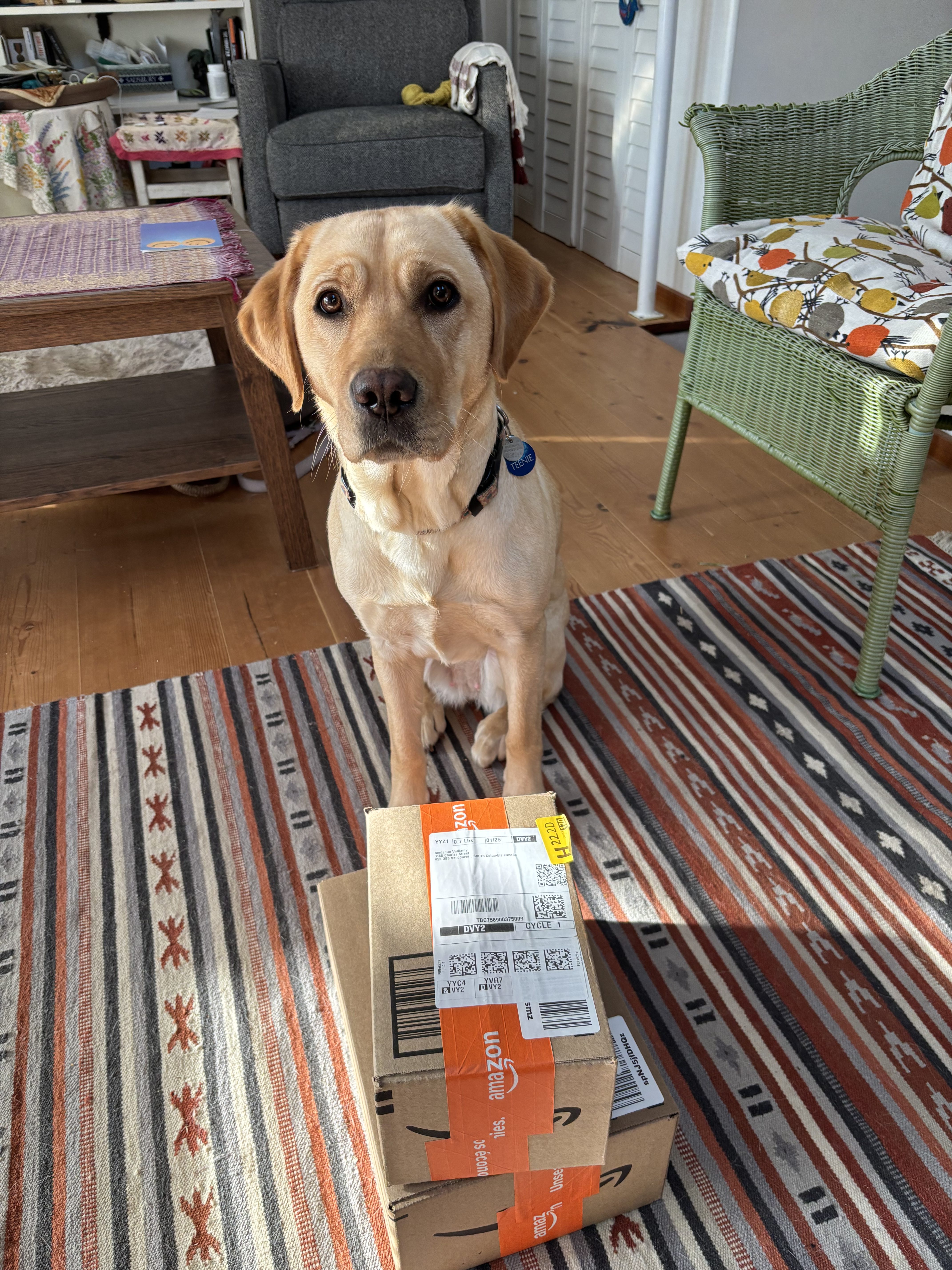 Teenie has been a wonderful pup for the last year. We got Teenie last March when she was 7 months old, and she’s progressed into a wonderful dog. She’s got a lot of personality and is very expressive and affectionate with humans. She plays well with other dogs and can navigate a sidewalk close to a non-reactive dog. She did well with her testing, so she will be going into Advanced training after she gets spayed this month. Teenie likes to get out and meet people, loves walks, snoring, food, and being at home. She’s a great pup, and we’ll miss her.