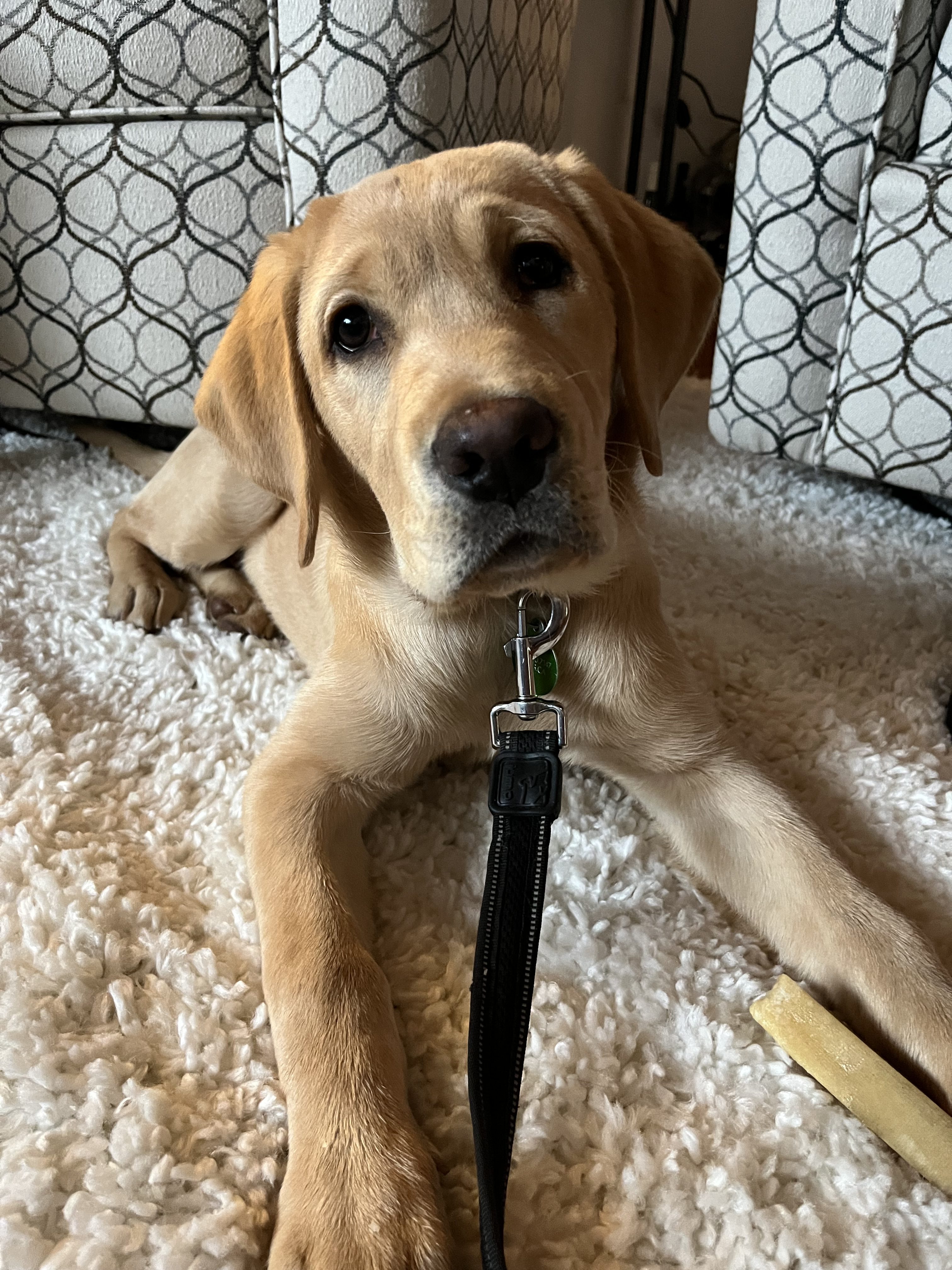 Toto is a gentle, curious soul, and picks up on learning new skills, but likes to take his time with figuring things out—although he loves his kibble, which helps motivate him! He had a fun-filled training day with sitter, Jo, where he explored all kinds of new surroundings. Toto is now 28 lbs.—he’s growing fast and is becoming all legs.