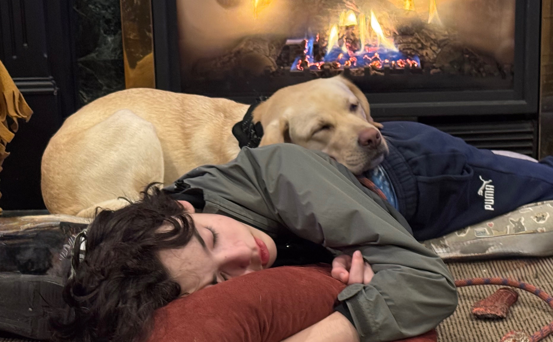 Here is me and my conjoined twin brother, Ryder. I make sure he’s safe and warm. ‘I got his back…got him covered ….laying 6… the cape of his crusading.’ When he calls out my name, he has a friend; winter, and probably spring, summer and fall. He’s got a friend in me …and me in him. BFF’s